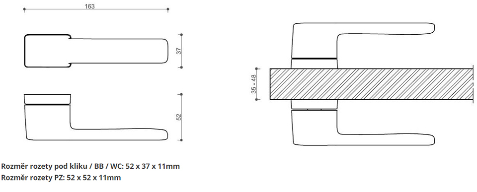 Dimension de la rosace pour poignée / BB / WC : 52 x 37 x 11 mm Dimension de la rosace PZ : 52 x 52 x 11 mm