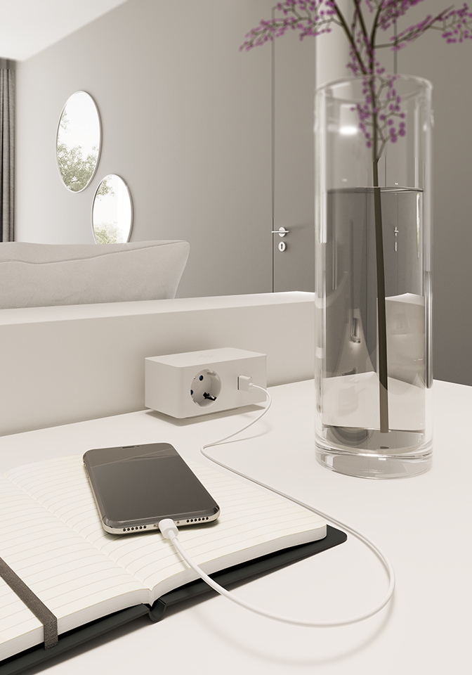 VersaQ 1x 230V, USB A+C 5V, charge sans fil QI, blanc
