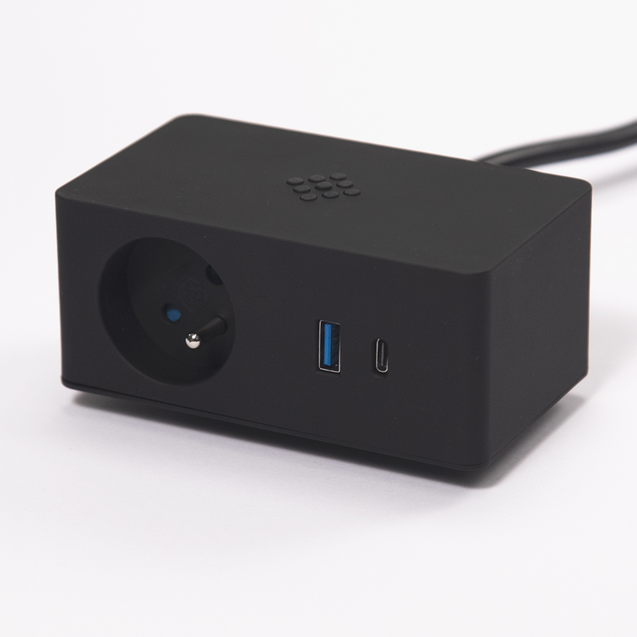 L'unité comprend une prise 230V et un connecteur de charge USB A+C.