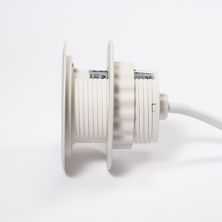 L'ensemble comprend également un adaptateur permettant l’installation dans des trous d’un diametre de 80 mm, élargissant ainsi son adaptabilité a presque tous les trous standards.
