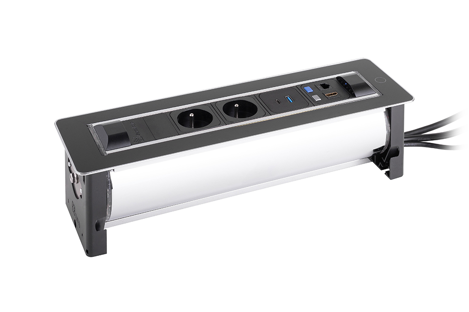 VersaTurn prise électrique 2x 230V FR, USB A/C, 1x RJ45, HDMI, verre noir