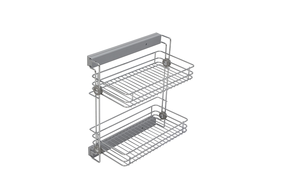 Cadre coulissant avec deux étageres. Glissiere a billes a extension totale avec rappel (sans amortissement). Variante universelle droite/gauche. Dimensions : 275*515*565 mm. Couleur : aluminium/chrome.