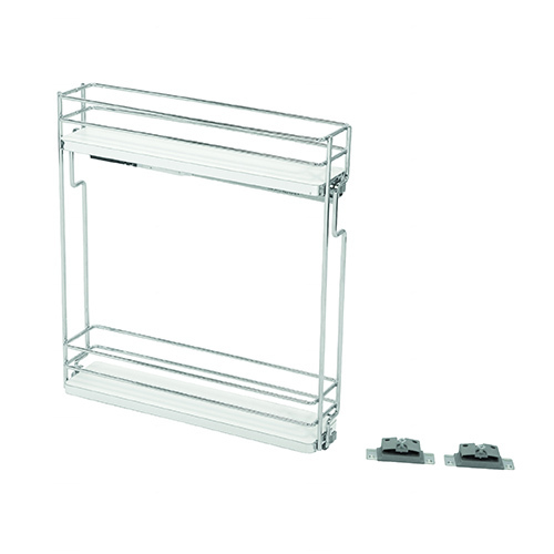 Boîte double latérale de la série Galaxy pour corps de 200 mm. Fil ovale chromé avec fond plein blanc. Montage sur le côté gauche du corps. Inclus fixation frontale avec réglage du panneau en trois directions. Coulisse a sortie totale avec amortissement dissimulée