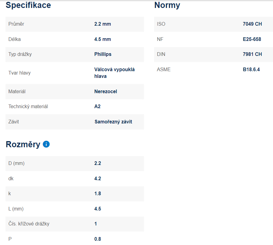 Vis a bois de rechange pour interrupteurs tactiles