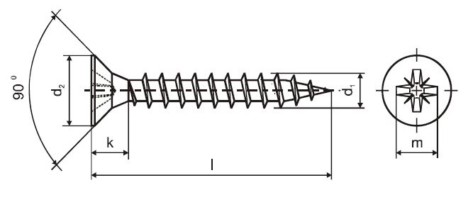 Vis a bois PZ 5x120/70 tete fraisée zinc blanc PZ2, filetage partiel