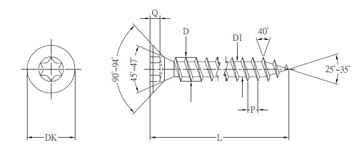 Vis a bois 5x100/60 finition : zinc blanc, empreinte TX - six pans étoilé intérieur, filetage partiel.