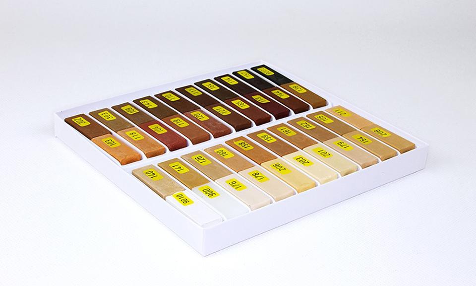 Les cires de retouche servent a remplir les petites fissures, trous, rayures et bosses. Adapté pour la réparation du bois, du placage, du stratifié, du film. Ensemble contenant 20 pcs de cires dures de 4 cm - ensemble 730.