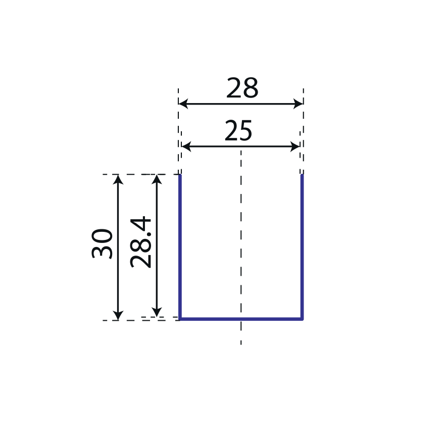 WC cabines Al profil U latéral 25 mm, longueur 2 m
