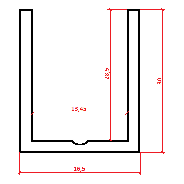 WC cabines Al profil U latéral elox 13 mm, longueur 2 m
