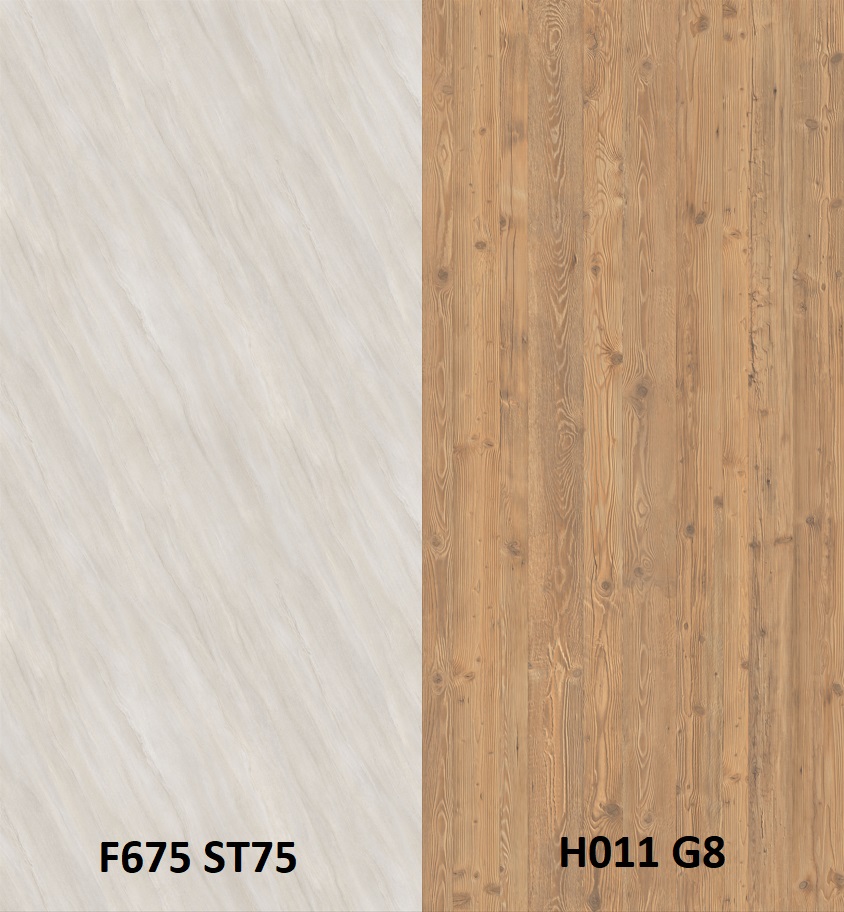 Zádové desky jsou dřevotřískové desky oboustranně potažené laminátem. Z každé strany mají jiný dekor.