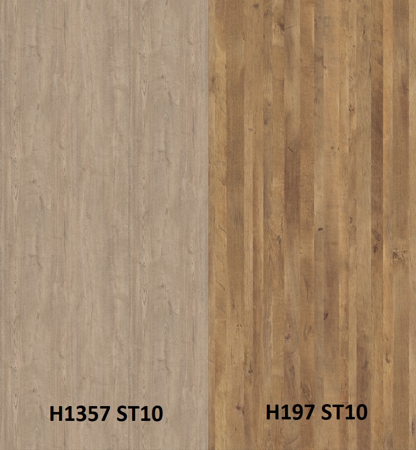 Zádové desky jsou dřevotřískové desky oboustranně potažené laminátem. Z každé strany mají jiný dekor.