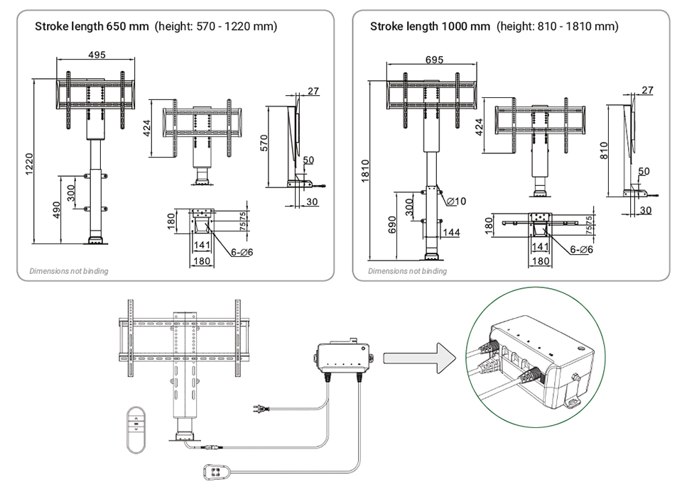 Zdvih na televizi électrique, course 650 mm, ht 620-1270 mm, noir